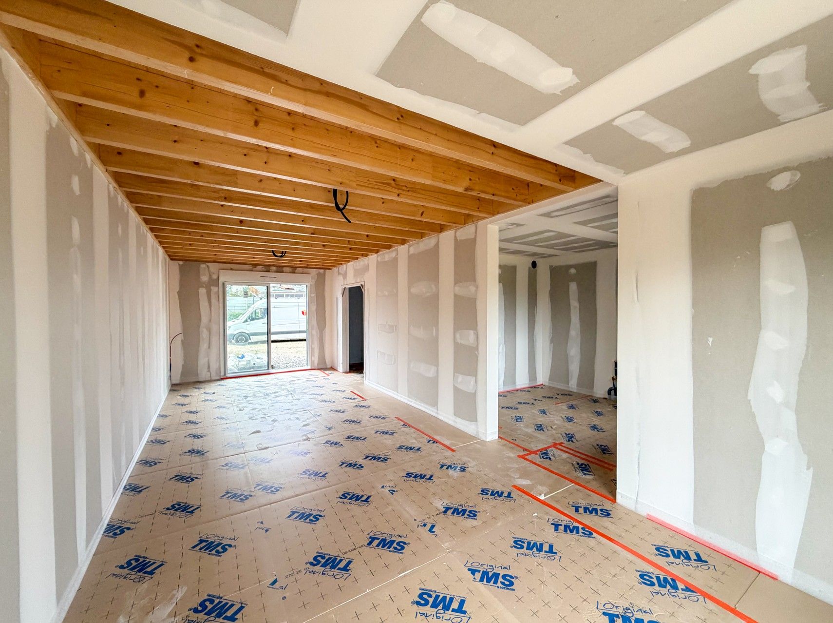 Doublage stil, cloisons sèches et plafondssur les 8 maisons individuelles et le bâtiment collectif.
