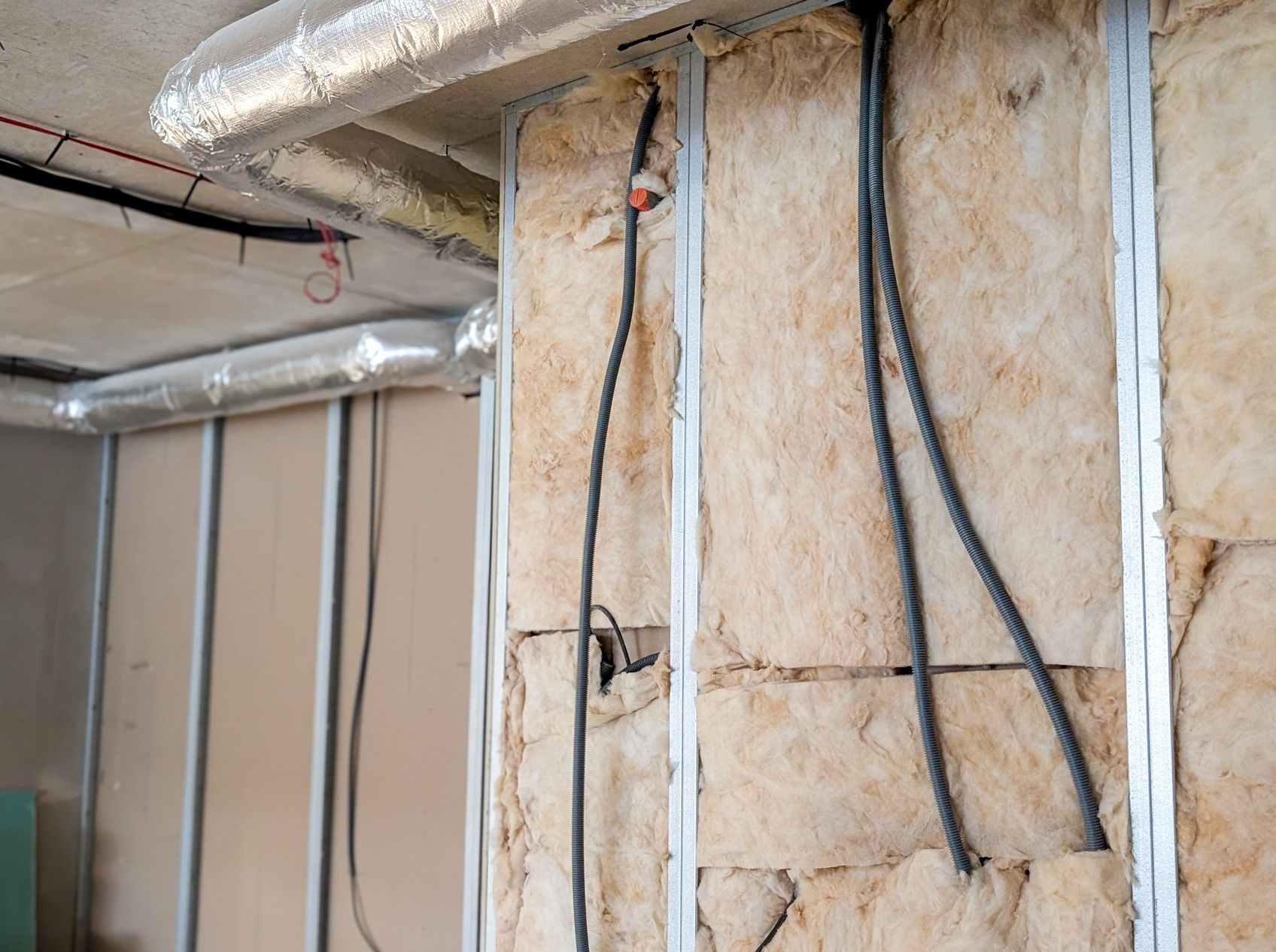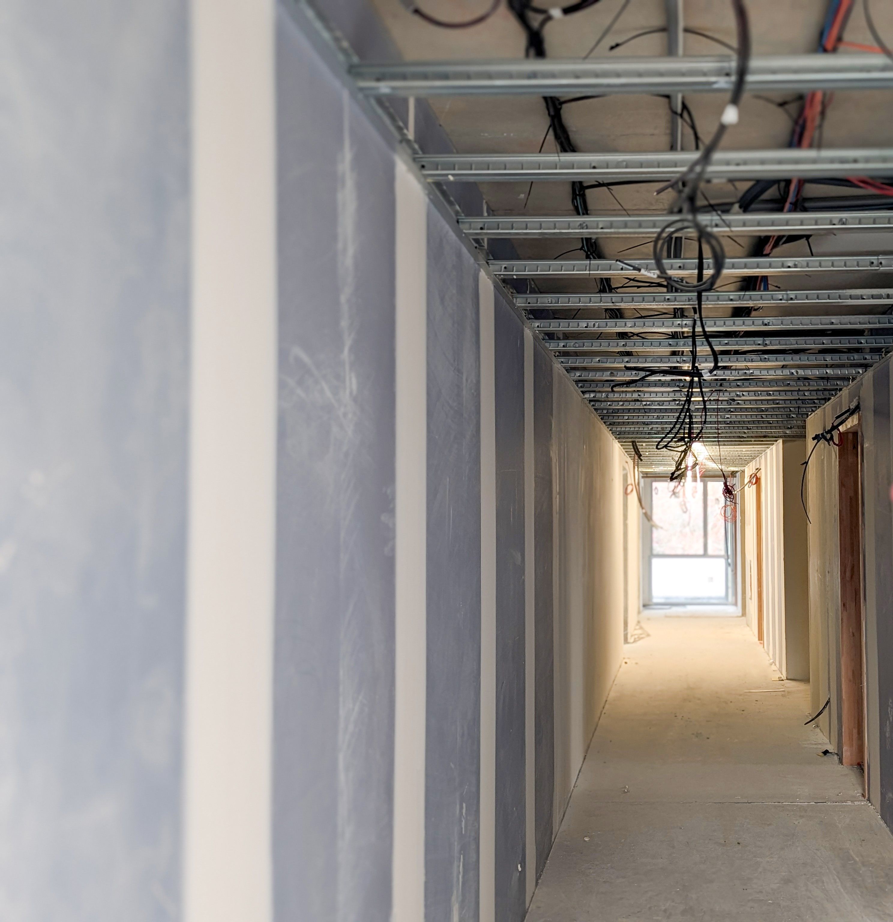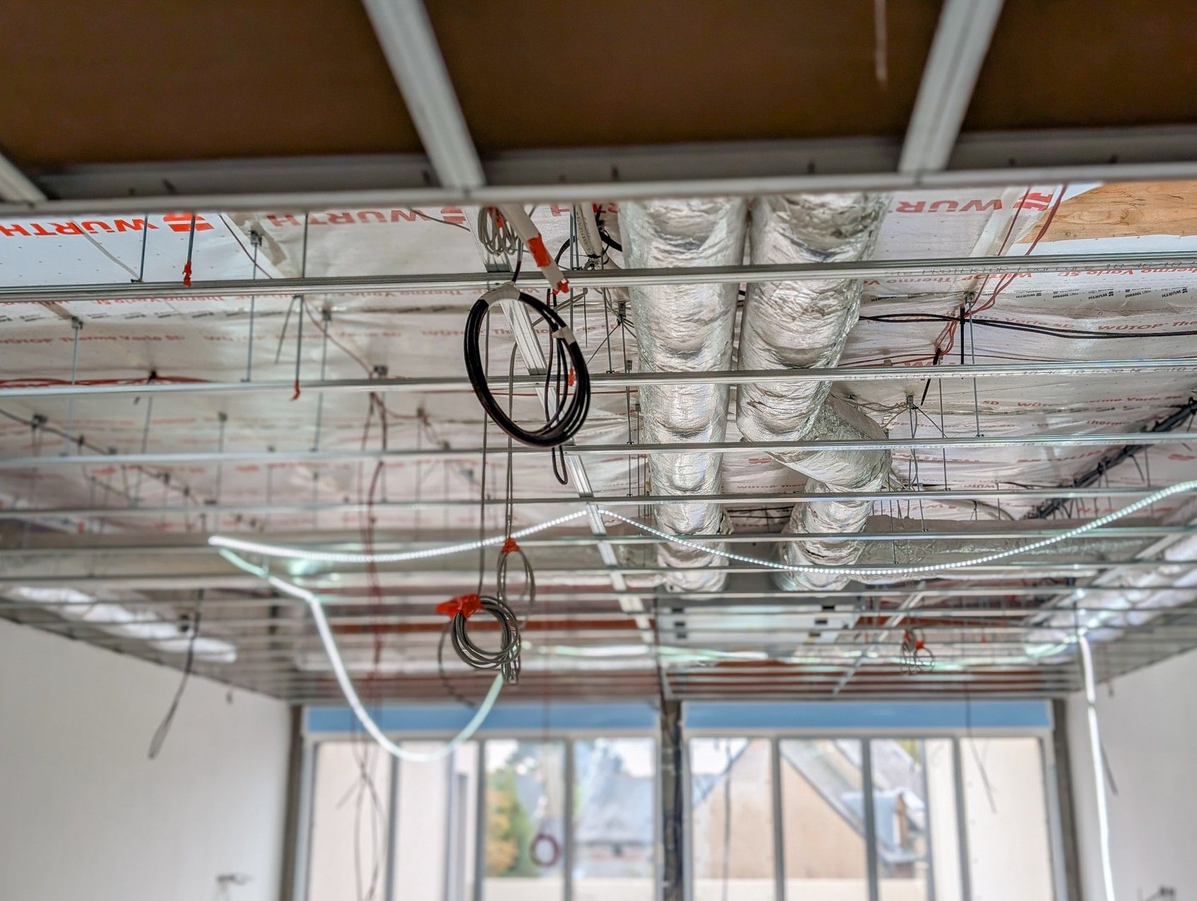 • Pose d’une membrane d’étanchéité à l’air sur les plafonds des deux bâtiments (R+1).